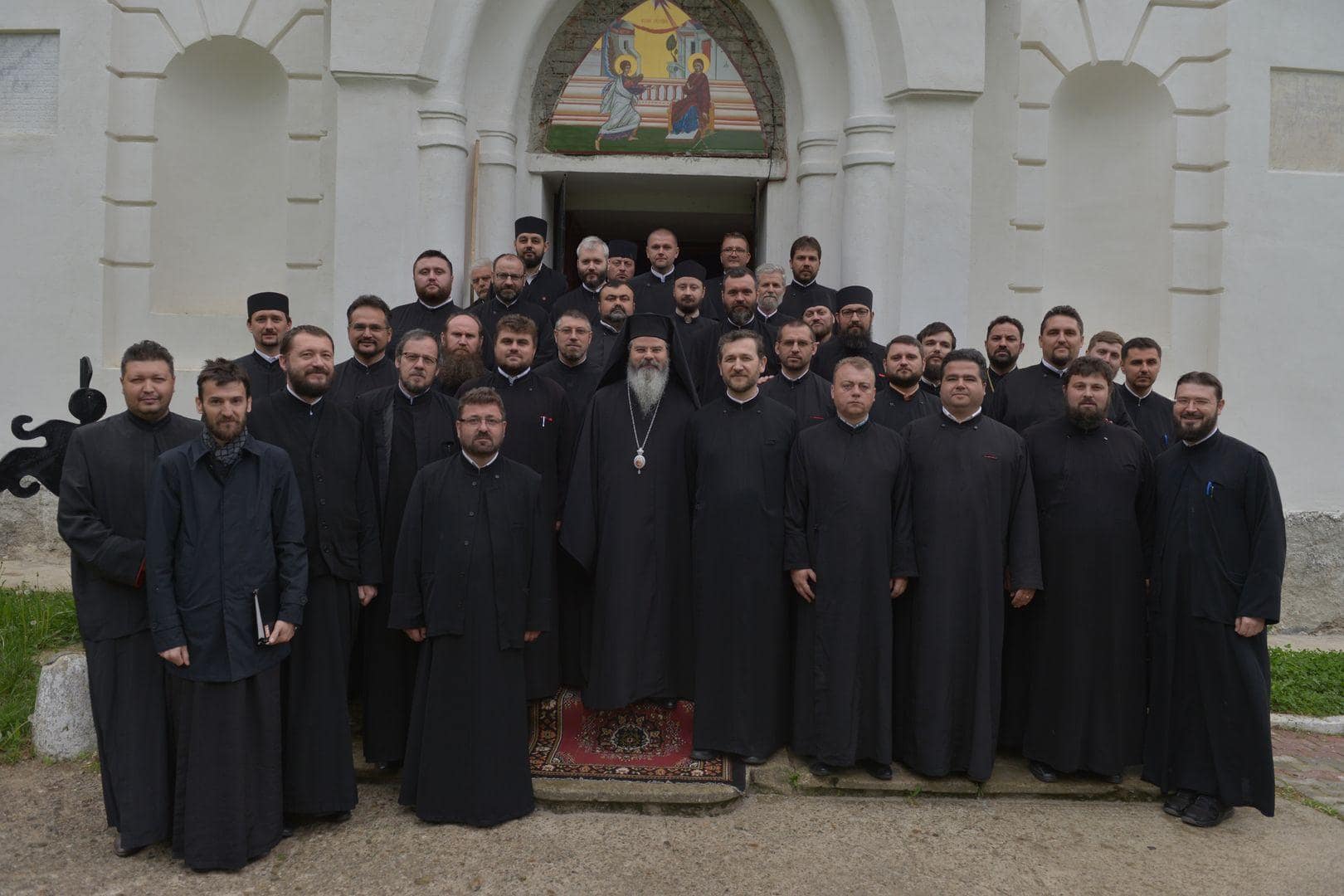 După oficierea Sfintei Liturghii, Preasfinția Sa a conferențiat clericilor din Mitropolia Moldovei și Bucovinei, participanți la cursurile preoțești pentru obținerea gradelor profesionale.