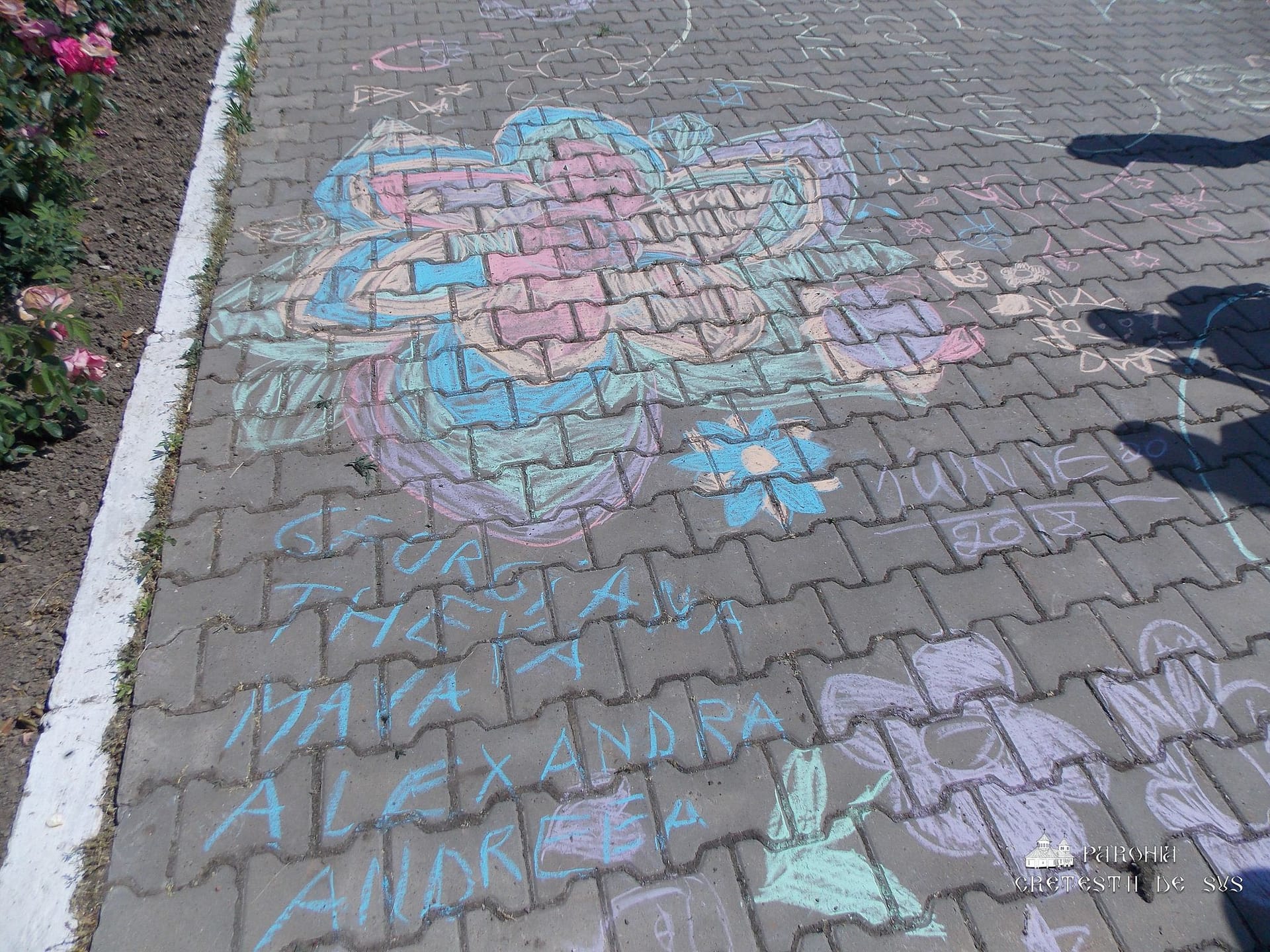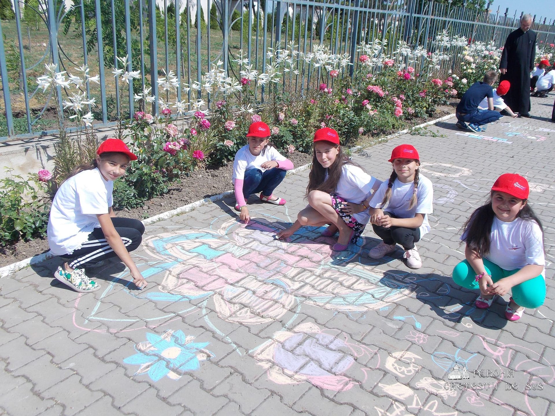 Evenimentul a continuat, după intonarea Imnului national, cu desene pe asfalt, joc de șah, cântece ale copilăriei și multă voie bună. Organizatorii au oferit copiilor prezenți tricouri cu însemnele evenimentului și șepci roșii, galbene și albastre, astfel că, la fiecare pas, se putea regăsi tricolorul. De altfel, înainte de plecarea spre masă, toți copiii s-au așezat astfel încât prin culorile purtate, să alcătuiască steagul României.
