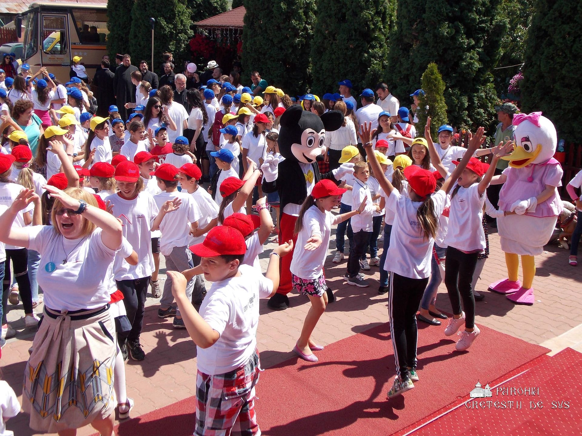 Programul evenimentului, ce a adunat peste 300 de copii, cu vârsta între 7 și 14 ani, proveniți din familii defavorizate din parohiile județului Vaslui, a debutat la ora 10.00 printr-o scurtă slujbă de mulțumire, oficiată de Preasfințitul Părinte Ignatie, Episcopul Hușilor, în fața statuii Sfântului Ștefan cel Mare.