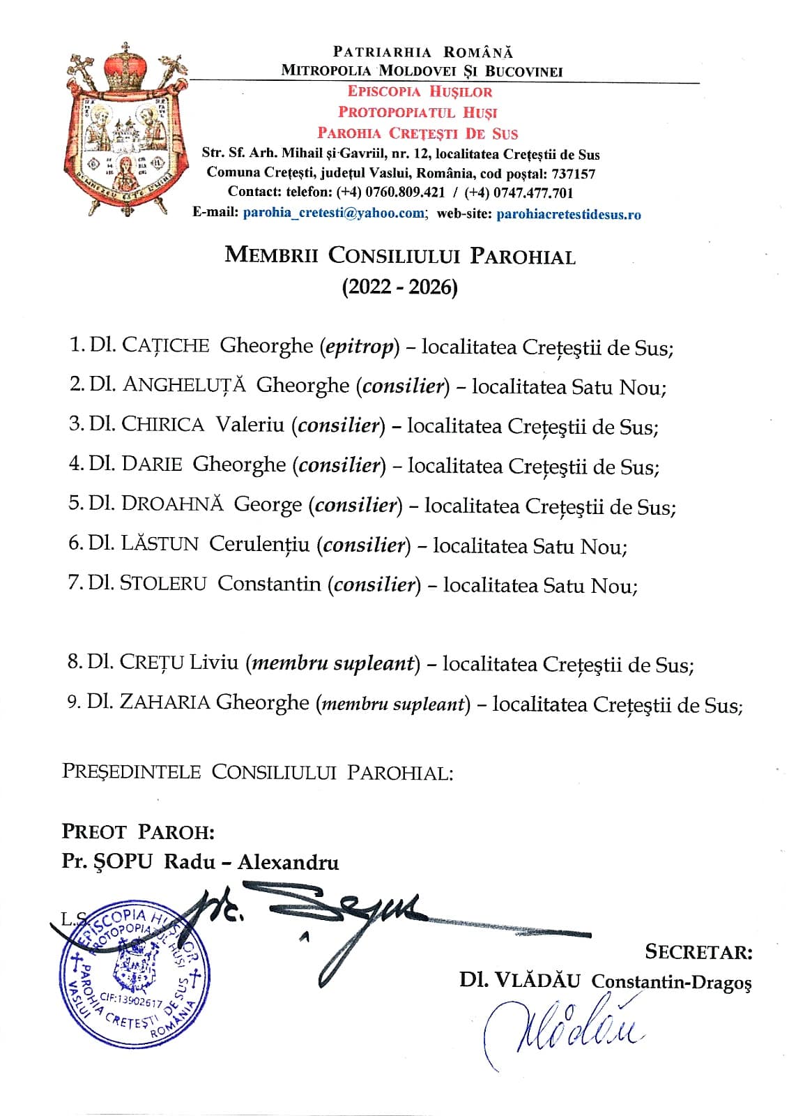 MEMBRII CONSILIULUI PAROHIAL (2022-2026)